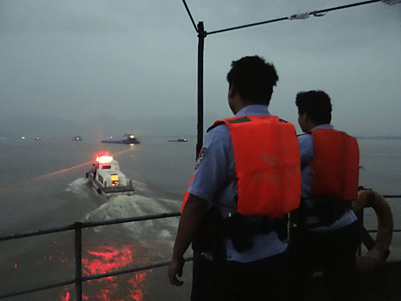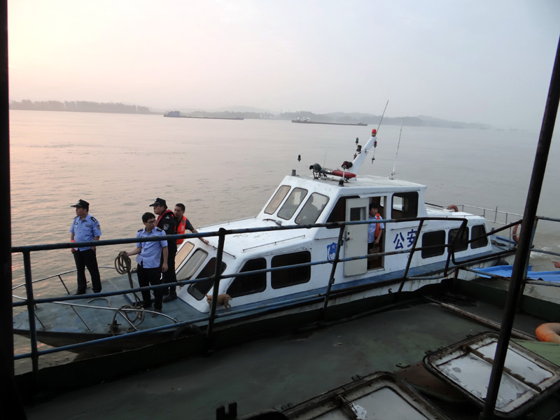 图一:凌晨4点半,干警与海事派出所汇合赶赴阳新港